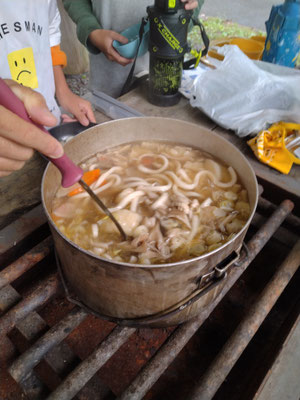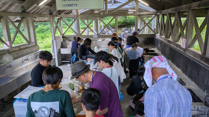 夕食は「ひっつみ汁」。どの班も美味しく仕上げ、満腹になるまで味わいました。