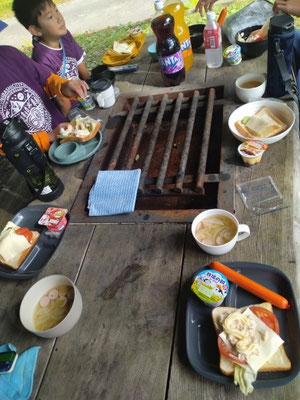 朝食には手作りのサンドイッチを食べ、バンガローをきれいに片付けてキャンプ場を出発。