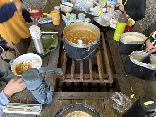 昼のアイスブレイクの後、夕食は自分たちで竈に火を起こしてカレーライスを調理。